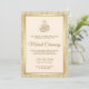 Sorprenda a sus huéspedes con esta invitación de estilo islámico que incluye un elegante damasco y un falso Relieve metalizado dorado con "Bismillah" en caligrafía árabe sobre un fondo crema.
