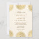 Sorprenda a sus invitados con esta elegante invitación de ceremonia de Mehndi que presenta un hermoso diseño de motivo de lámina dorada falsa sobre un fondo crema. Voltee la tarjeta para revelar un elegante patrón de puntos en el reverso de la tarjeta.