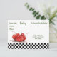 Invitación Cerezas rojas brillantes en un mantel de cuadros