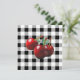 Invitación Cerezas Vintage negro blanco gingham