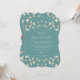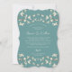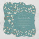 Una ilustración original de hermosas flores de cerezo blancas crema marfil o sakura flores de primavera con ramas marrón claro sobre un fondo verde turquesa. Esta es una tarjeta de invitación plana moderna para el día de la boda / fiesta de boda / fiesta de pareja / fiesta de compromiso / ducha de novia / cena de ensayo de boda.