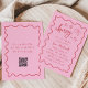 Esta moderna ducha de chica combina el popular tema de la "cereza en la cima" con un texto informal escrito a mano y ilustraciones hechos a mano con un rojo cereza vibrante, enmarcado por un borde ondulado, en un fondo rosado. Agregue un código QR a la parte posterior para guiar a los invitados al registro de la futura madre.