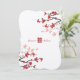 Tarjeta plana de invitación de boda china doble faz con flores de cerezo blancas/rojas/Sakura y Doble Felicidad moderna.