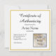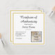 Invitación Certificado cuadrado de autenticidad de la foto de