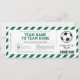 Invitación de Certificado de Boleto de Regalo Sorpresa de Fútbol. Anota un gol con nuestra Plantilla de Boleto de Regalo de Partido de Fútbol. Personaliza para un regalo perfecto y da la emoción de una experiencia de partido en vivo. ¡Es un regalo digno de un gol para cualquier fanático del fútbol!