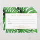 Coordina con la Tarjeta de Visita de Negocios de Patrón de Hojas de Monstera Tropical Acuarela de 1201AM. Un elegante motivo tropical de hojas de monstera acuarela se convierte en un patrón llamativo en este certificado de regalo personalizable. Arte y diseño © 1201AM Design Studio