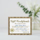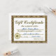 Invitación Certificado de regalo de oro personalizado para in
