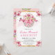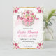 Flores color de agua rosa y morado en cesta con diseño de mariposas con bordes de Relieve metalizado dorado y confetti purpurina