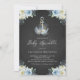 Invite a los huéspedes con esta rústica invitación a rociar bebés. Cuenta con un ilustracion acuático de un ancla con flores azules y blancas sobre un falso fondo de pizarra. Personalice agregando nombres, fecha, hora, lugar, dirección y otros detalles del evento. Esta invitación floral de ancla es perfecta para "Es un niño rociado".