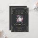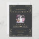 Fije el tono para una celebración caprichosa y espeluznante con esta divertida y moderna invitación a la fiesta de Halloween en el pizarrón. El fondo negro de la pizarra crea un ambiente muy sobrio, mientras que el delicado enrollamiento de las cuatro esquinas aporta un toque de elegancia. El sencillo texto dorado ofrece un contraste elegante, asegurando que los detalles de su fiesta se destaquen con estilo. En el centro del diseño hay un fantasma súper lindo, con una copa en una mano y una linterna de jack-o' en la otra. Vestido en un abejorro lúdico, este fantasma aporta una energía divertida y festiva a la invitación, por lo que es ideal para una reunión de Halloween con un poco de humor. Las estrellas que rodean al fantasma añaden un toque mágico adicional, que cautiva perfectamente el encanto de la temporada. La parte trasera de la invitación se encuentra en el negro clásico de la pizarra, con un diseño pulido y cohesivo. Esta invitación combina imágenes lúdicas de Halloween con una elegancia moderna, asegurando que sus huéspedes se sientan entusiasmados por una noche espeluznante de diversión y sorpresas deliciosas.