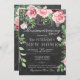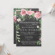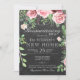 Rústico y elegante fiesta/barbacoa con rosas de peones pintados a mano rosa y rojo con hojas y follaje verde esmeralda y con un guión de caligrafía editable a mano de moda a la moda sobre un fondo de pizarra de carbón gris oscuro. ++++++++++ Adecuado para primavera, jardín de verano o otoño / patio trasero al aire libre / vintage floral / rústico casa de campo / nueva casa / fiesta de limpieza o barbacoa.