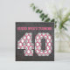 Si desea esta invitación con un número diferente en la parte delantera o en diferentes colores, por favor contáctenos a través de nuestra tienda CelebrationBazaar y estaríamos encantados de crearla para usted. Celebre el 40º cumpleaños de la estrella de béisbol o de los aficionados al béisbol con esta invitación moderna que incluye un diseño de pizarra. El frente de la invitación tiene un gran número de color rosa 40 con unas pelotas de béisbol en su interior, con el texto "Adivina quién está girando". La parte trasera de la invitación presenta el mismo diseño de pizarra con un sutil patrón de pelotas con texto de personalizable para los detalles de su fiesta en la coordinación rosa y blanco.