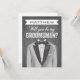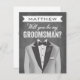 Disponible en estilos groomsman, mejor hombre, groomsman junior y portador de anillo. Has encontrado a tu esposa, pero aún necesitas a tus hijos. Pídeles que sean parte de su gran día con estas elegantes y modernas tarjetas de groomsman sobre fondo de pizarra.