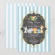 Animales de safari acuarelas adorables sobre un fondo de rayas azules y blancas con un elegante marco dorado. Disponible en nuestra tienda para chicas con ducha para bebés o ducha neutra para bebés.