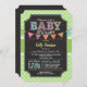 Invitación Chalkboard look Baby Shower; Lime Green Quatrefoil