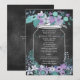 Una explosión de flores tonales moradas y acuáticas se derrama a partir de un contorno de pizarra de un frasco de albañil en esta invitación a la boda o a la ducha que combina dos tendencias para una celebración de abajo a la tierra pero magnífica. Impresiones de texto de invitación dentro del frasco de albañilería con acentos orgánicos. Disponible en colores alternativos con productos coincidentes.
