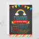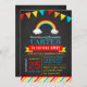 Celebra el cumpleaños de tu hijo con nuestro adorable tema del arcoiris. Con un arcoiris sobre las nubes, una bandera de colores sobre el fondo de una pizarra y detalles de su fiesta personalizado en la tipografía moderna. En el reverso de las invitaciones se encuentra un retrovisor. Personalice las invitaciones agregando el nombre y los detalles del fiesta de su hijo.