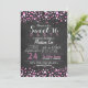 Personalice esta elegante pizarra de estilo retro rosa rosa y blanco confetti vintage, tiza, se ve chica dulce 16, dieciséis cumpleaños de invitación a la fiesta. Es perfecto para fiestas de primavera, verano, otoño o invierno. Diseño neutro y moderno para fiestas de 16 años.