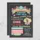 Chalkboard Under Sea Birthday Party Invitación Tan bonito! Perfecto para una niña pequeña a cualquier edad. Esta invitación incluye una concha de mar con una foto del chica de cumpleaños, caballos de mar, peces payasos, corales y pez estrella, todo en un fondo de pizarra. Ilustracion dibujado a mano por McBooboo