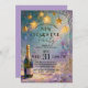 The design showcases a glittering champagne bottle ready for toasting, set against a mesmerizing backdrop of luminous, twinkling gold stars and abstract, floral-inspired artistry. This unique aesthetic is perfect for hosting a glamorous New Year's Eve gala, a sophisticated cocktail party, or an intimate holiday celebration.