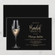 Invitación Champagne Glass Black White Floral Bridal Shower