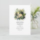 Champán, invitación a la boda floral verde y negra. El código QR al revés se dirige al sitio de su boda, donde la gente puede aprender más y ver más.
