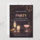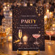 Modern champagne lights theme in deep black and gold, featuring sparkling star accents, ribbon detail, and glowing candlelight with champagne and cocktail elements. Designed for upscale evening gatherings, cocktail nights, and birthday celebrations with a polished, elevated table scene.