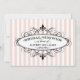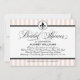 Suaves rayas rosadas y blancas de champán enmarcan esta elegante invitación de despedida de soltera de boda parisina con un medallón de flor de lis y un detalle de cinta negra punteada. El tono neutro cálido añade una sutil sofisticación al diseño inspirado en Francia, mientras que la escritura de caligrafía y el texto serif negro mantienen el aspecto pulido. Cada detalle es totalmente editable.