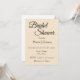 Estilo sencillo, invitación a la ducha de novia que cuenta con un fondo a la moda y color champán junto con el nombre de la futura novia y la hora y ubicación del evento fiesta, contacto, etc., impreso con letras blancas y estilizadas. Personalice su invitación reemplazando el texto con su propia información sobre la ducha de novia. Seleccione el estilo y la cantidad del papel de invitación.