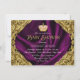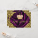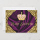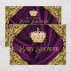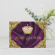 Elegante y lujosa invitación de champán de bebé de princesa real rosa y dorada. Esta hermosa invitación de champán de bebé con remolinos dorados sobre un fondo de satén púrpura real, y corona rosa y dorada es fácilmente personalizable para su evento simplemente agregando sus detalles en el estilo de letra y color, y redacción de su elección.