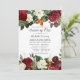 Invitación de boda por correo a distancia con tema de rosa vintage antigua con acentos de rojo vino de Borgoña, blanco marfil y dorado herrumbre.