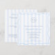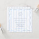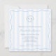 Una invitación de boda costera moderna y elegante de azul claro y blanco que incorpora un borde de concha de mar dibujada a mano y garabatos y tendencias de rayas modernas para una novia contemporánea y sofisticada. En el reverso están las mismas rayas y algunos campos de texto adicionales y un código QR (puede eliminarlos si lo prefiere). Se muestra aquí para una ducha nupcial, pero todo el texto es personalizable para su evento.