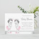 Invitación Champán Rosa y Plata para Gemelas Baby Shower