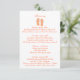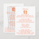 Chancletas naranjas tropicales divertidas y toalla de playa tarjeta de información de invitación a la boda de playa. Itinerario en un lado y alojamiento en el otro lado. Personalice el texto como prefiera.