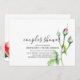 Invitación elegante y moderna para la ducha de la pareja con temática floral de acuarela manuscrita en blanco con rosas y capullos rojos, hojas verdes con espacio en el reverso para detalles adicionales. Para suministros de fiesta a juego, contacte al diseñador. Puede transferir este diseño a una invitación magnética o a otro tamaño y estilo según lo desee.