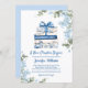 Invitación chapter begins, blue bow books floral baby shower