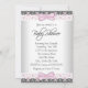 Invitación adorable para baby shower de niña con un diseño de bebé con pantalones de volantes y perlas sobre un bonito fondo de encaje rosa y gris. Esta invitación rosa y negra se personaliza fácilmente para su evento añadiendo los detalles del evento, estilo de letra, tamaño y color de la fuente, y texto. Este es un diseño impreso sin perlas reales, encaje, etc.