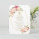 Invitación Charm Pink Rubor Flores Gold Frame Santa Comunión