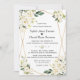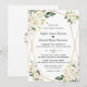 Charming design featuring a faux gold frame decorated with watercolour white cream flowers, green leaves bouquets, floral divider; on the back white floral wreath in a heart shape, initials, on white background. Matching items could be found in my White Flowers Bloom Collection.