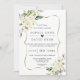 TODO EN UNA invitación. Al incluir los detalles y RSVP (opcional) en la parte posterior de la invitación a la boda en lugar de en una tarjeta separada para el recinto, puede guardar papel. Elegante diseño de cartas con delicadas flores de color blanco, follaje eucalipto, marco falso dorado, todo sobre un fondo blanco. Utilice la herramienta Personalize para agregar su información. Para ver los elementos coincidentes, por favor, visite mi Colección de Flores Blancas.