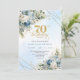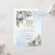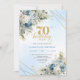 Celebrate a milestone in style with this elegant 70th birthday invitation featuring watercolor dusty blue and white flowers, soft eucalyptus greenery, and a shimmering gold frame. Designed in chic boho style with refined script lettering, this floral invitation is perfect for a classy 70th birthday party. Ideal for formal, garden, or luxury celebrations with a timeless, sophisticated touch.