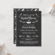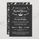 Invitación a la ducha de novia en blanco y negro mate con una tibia olla y herramientas y fuentes encantadoras.