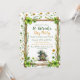 A rustic, nature‑themed invitation layout with bright green clovers and playful illustrated details. All text and elements are customizable, and the matching clover pattern appears on the reverse side.