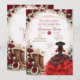 Invitación Charra Western Quince Red Rose Quinceañera