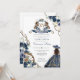 Diseño rústico elegante con un tema de charro/vaquero/rancho. Con un hermoso escudo, florales azules y blancas de lujo y botas de vaquero/vaquero de bonito