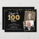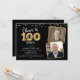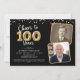 Cheers to 100 Years 2 Photos Script Gold Balloon Numbers Black Party Invitation. Celebrate a 100th birthday with these elegant and festive party invitations featuring the title CHEERS TO 100 YEARS with faux metallic gold balloon numbers and confetti, modern script typography and 2 photos with your choice of background color (shown in black). ASSISTANCE: For help with design modification or personalization, transferring the design to another product or if you would like coordinating items, contact the designer BEFORE ordering via Zazzle Chat or email makeitaboutyoustore@gmail.com.