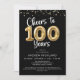Invitación Cheers to 100 Years Gold Balloon Numbers Black