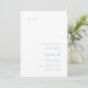 Invitación a la boda moderna con un diseño sencillo y minimalista con su monograma en la esquina superior izquierda y los detalles de su boda en la esquina inferior derecha. La parte de atrás tiene tu foto favorita. Todos los elementos de diseño están en azul polvoriento y pueden cambiarse en la herramienta de edición de diseño. Esta invitación nupcial con un diseño minimalista y elegante combina perfectamente con cualquier estilo de boda contemporáneo.