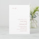 Invitación a la boda moderna con un diseño sencillo y minimalista con su monograma en la esquina superior izquierda y los detalles de su boda en la esquina inferior derecha. La parte de atrás tiene tu foto favorita. Todos los elementos de diseño son de color rosa rosa polvoriento y pueden cambiarse en la herramienta de edición de diseño. Esta invitación nupcial con un diseño minimalista y elegante combina perfectamente con cualquier estilo de boda contemporáneo.