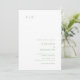 Invitación a la boda moderna con un diseño sencillo y minimalista con su monograma en la esquina superior izquierda y los detalles de su boda en la esquina inferior derecha. Todos los elementos de diseño están en color verde sabio y pueden cambiarse en la herramienta de edición de diseño. Esta invitación nupcial con un diseño minimalista y elegante combina perfectamente con cualquier estilo de boda contemporáneo.